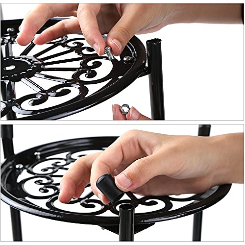 1. Duurzaam en elegant design: de 2-laagse metalen beugel is gemaakt van hoogwaardige materialen en kan dagelijks worden gebruikt. Gemaakt van ijzer, de bloemschaal is glad en het prachtige smeedijzeren ontwerp zorgt ervoor dat de ijzeren plantenbloemenstandaard er mooier uitziet.