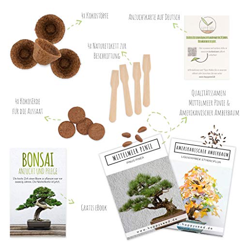 Specification: Bonsai Starter Kit vermeerderingsset incl. GRATIS eBook – plantenset van kokosnootpotten, zaden & grond – duurzaam…