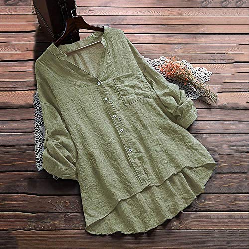 CPNG Dames bovenstukken, dames katoen linnen casual doorlange mouwen V-hals zakken blouse top dames bovenstukken elegant