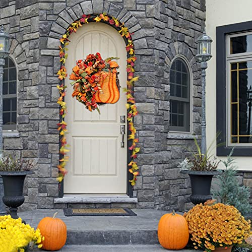 Specification: Oranje Grote Pompoen Hortensia Krans Voordeur, 45cm Kunstmatige Herfst Bloemen Pompoen Krans Decor, Herfst Pompoen Deur…