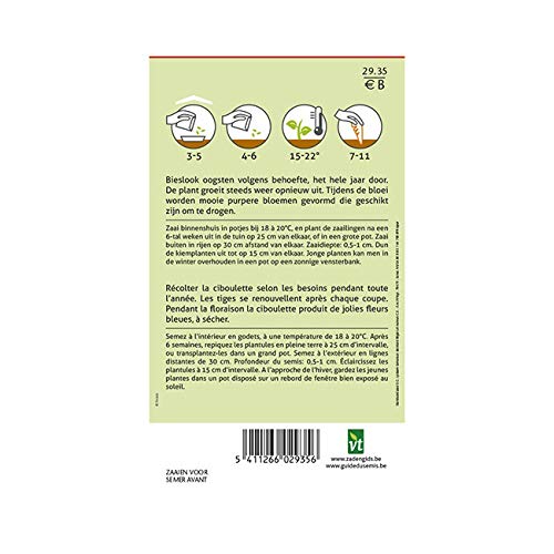 Oogst de snijslang indien nodig het hele jaar door. De stengels worden na elke snede vernieuwd. Tijdens de bloeitijd produceert de slang voor het drogen mooie blauwe bloemen. Zaai binnen in emmers, bij een temperatuur van 18 tot 20 graden Celsius. Na 6 weken [COMMA] de zaailingen op een afstand van 25 cm buiten planten of in een grote pot omplanten. Zaai buiten op een afstand van 30 cm uit. Zaaidiepte: 0,5-1 cm. De zaailingen op een afstand van 15 cm uitdunnen. Laat de jonge planten in de winter in een pot op een aan de zon blootgestelde vensterbank staan.